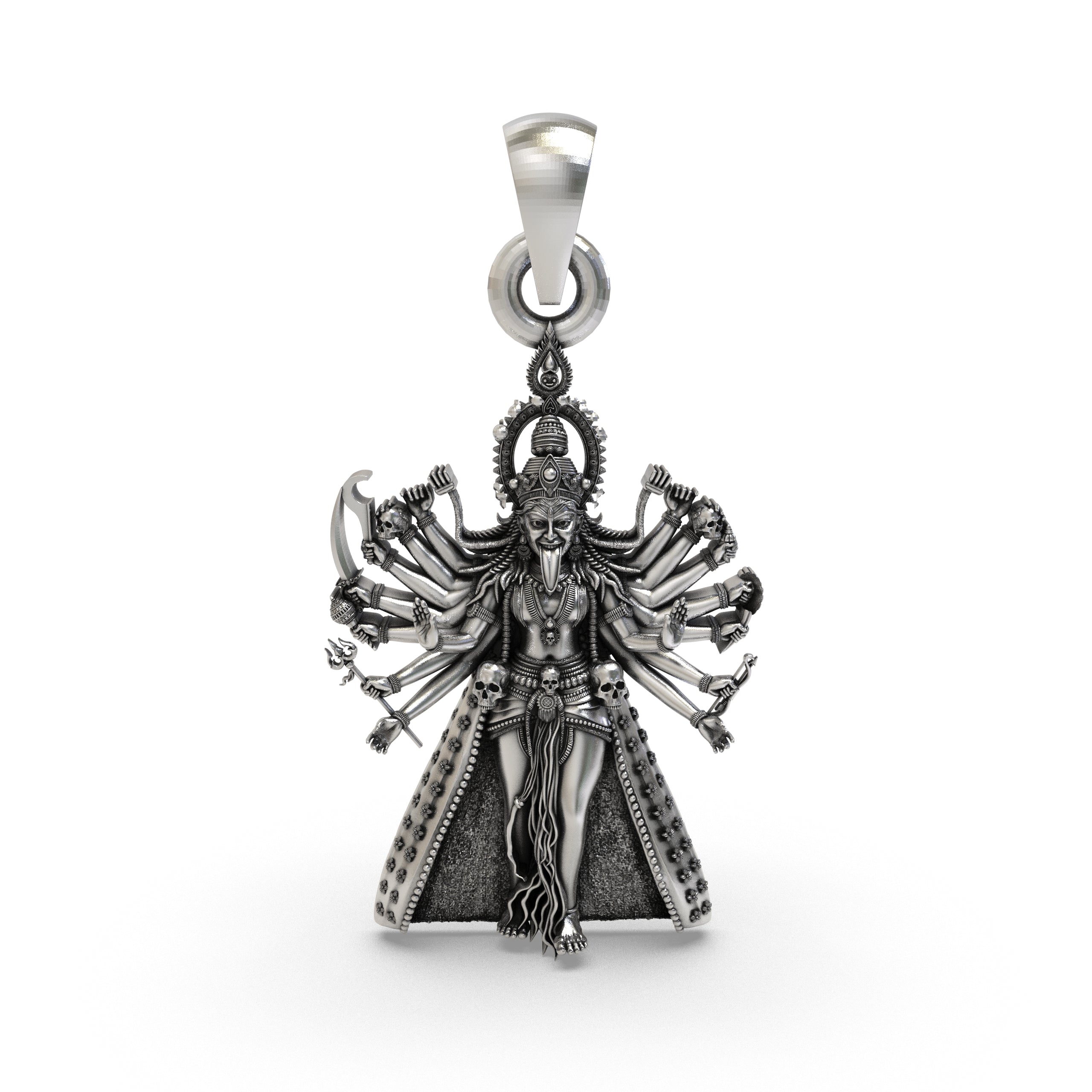 925 Silver Kali Maa Pendant – Mahakali Multi-Armed Idol with Trishul & Skull Garland, Antique-Oxidized Handcrafted Temple Jewelry, Navratri Gift