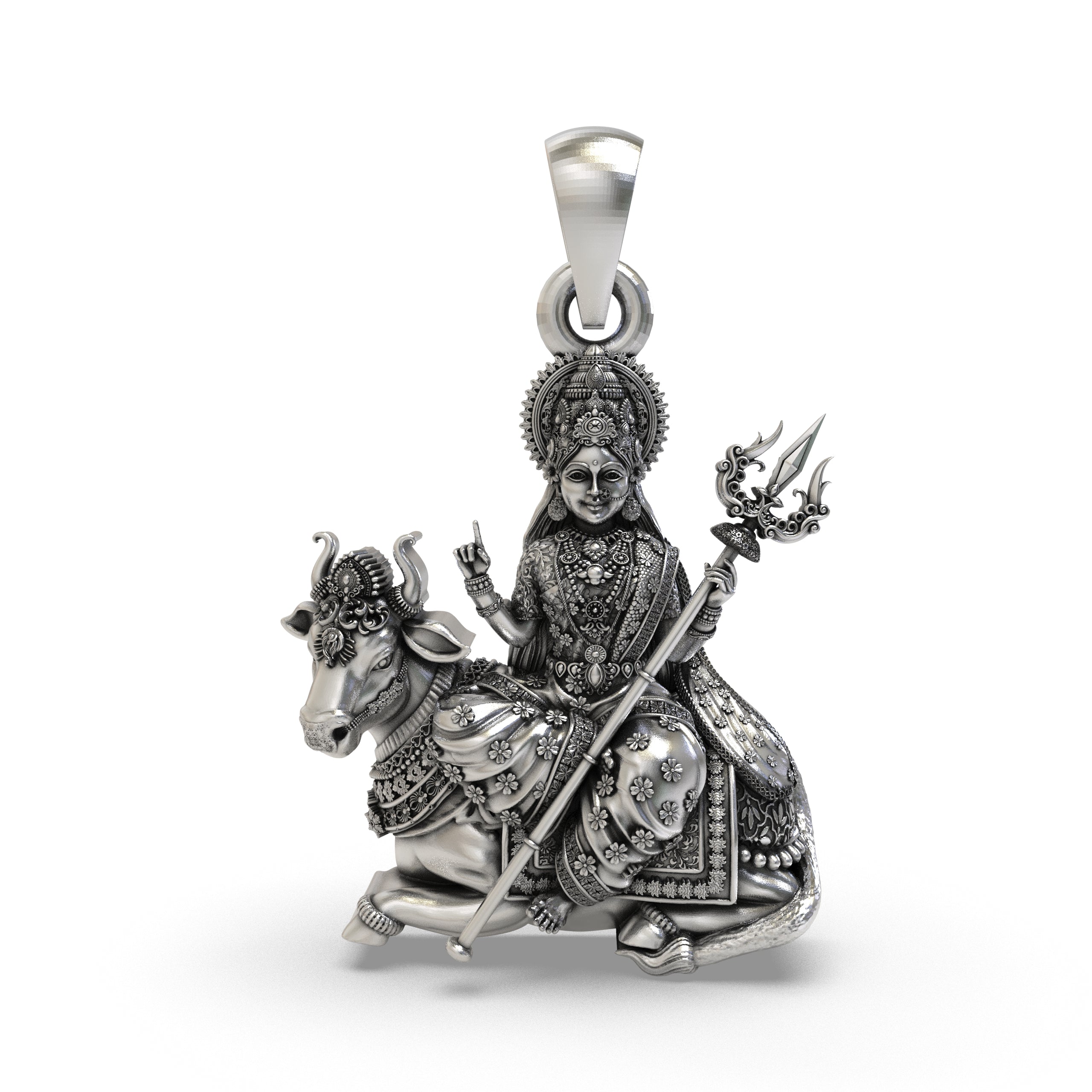 925 Silver Mahagauri Durga Pendant – Vrishabha Vahana (Bull) with Trishul, Antique-Oxidized Handcrafted Temple Jewelry, Navratri Gift